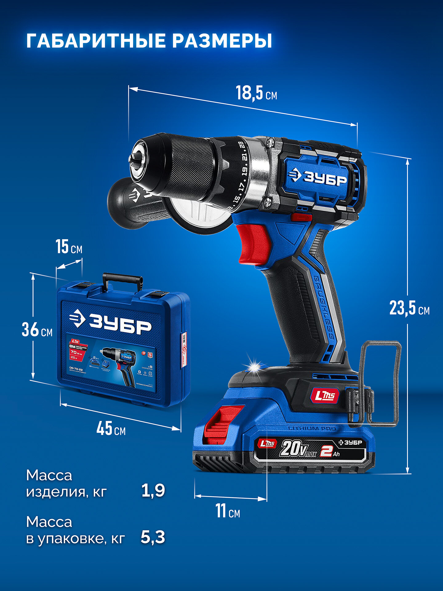 Благодаря бесщеточному двигателю, дрель-шуруповерт ЗУБР демонстрирует повышенную эффективность, увеличенный срок службы и сниженный уровень шума. Вы сможете выполнять сложные задачи с легкостью и уверенностью, не беспокоясь о быстрой разрядке аккумулятора.