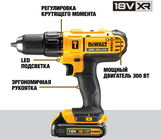 Дрель-шуруповёрт Dewalt DCD776S2, 18В, 2 аккумулятора, быстрозажимной патрон