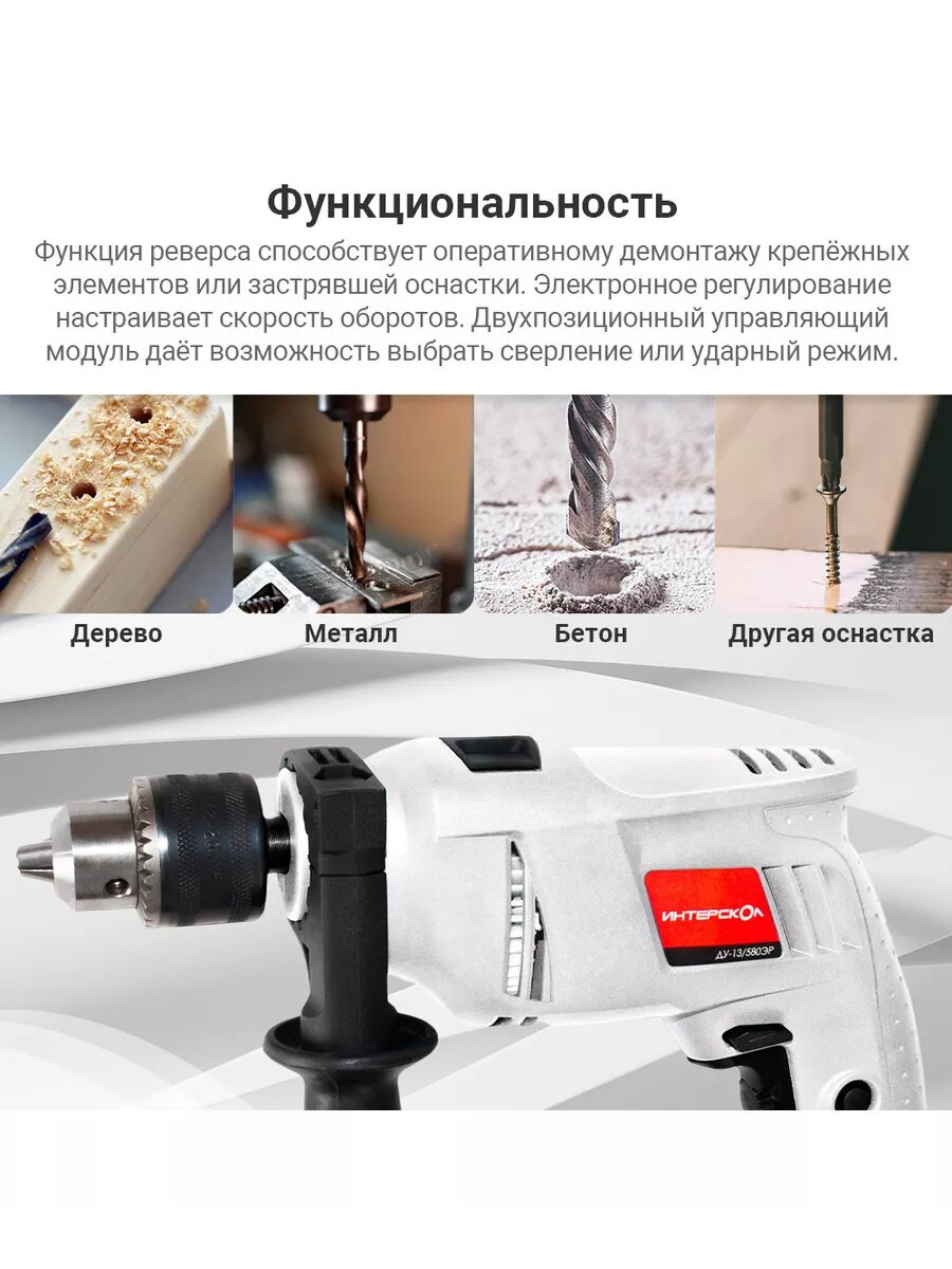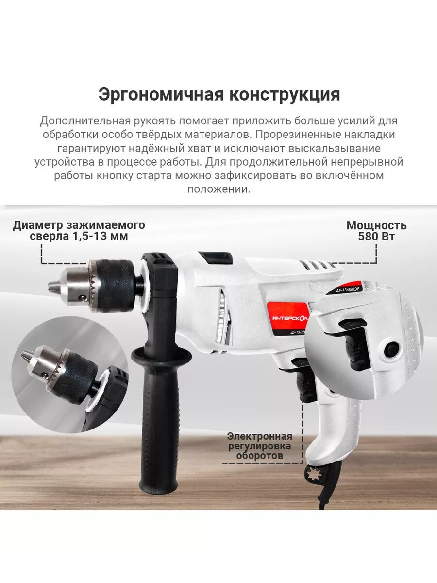 Ищете надежную и удобную дрель для дома или мастерской? Обратите внимание на ударную дрель Интерскол ДУ-13/580ЭР! Этот инструмент станет вашим незаменимым помощником при выполнении широкого спектра задач – от сверления отверстий в дереве и металле до работы с бетоном и кирпичом.