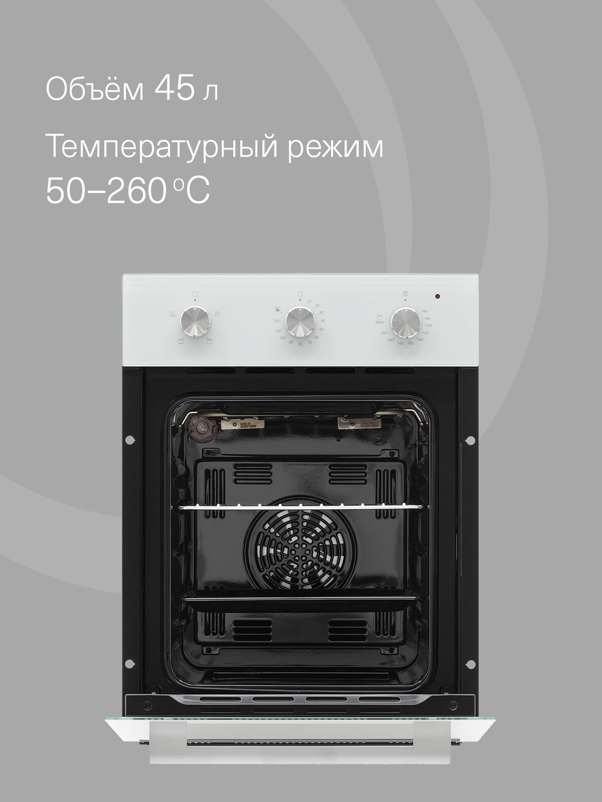 Несмотря на свои компактные размеры, духовой шкаф обладает достаточным объемом для приготовления полноценного обеда или ужина для всей семьи. Различные режимы нагрева позволяют подобрать оптимальные условия для любого блюда – от нежной выпечки до сочного мяса.