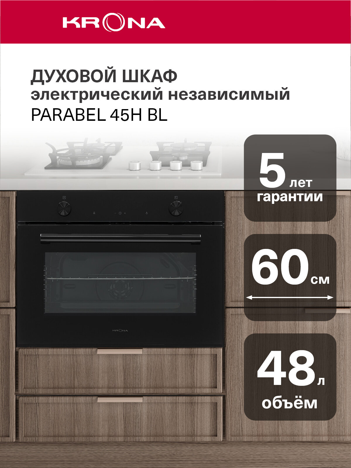 Выбирая KRONA Parabel 45H BL, вы выбираете надежность, удобство и стиль. Этот духовой шкаф станет вашим верным помощником на кухне и позволит вам наслаждаться вкусными и здоровыми блюдами каждый день.