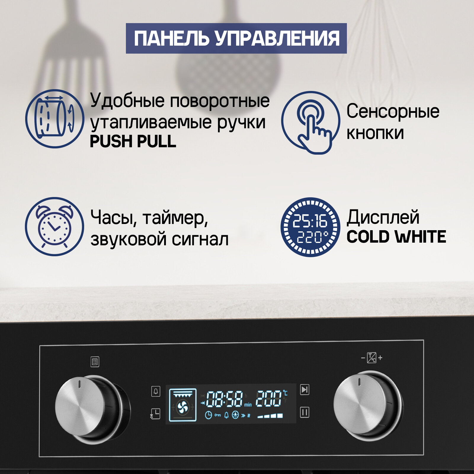 Простое и интуитивно понятное управление делает использование духового шкафа Maunfeld AEOH6062B максимально комфортным. Вы сможете легко выбрать нужный режим и установить необходимую температуру для приготовления ваших любимых блюд.