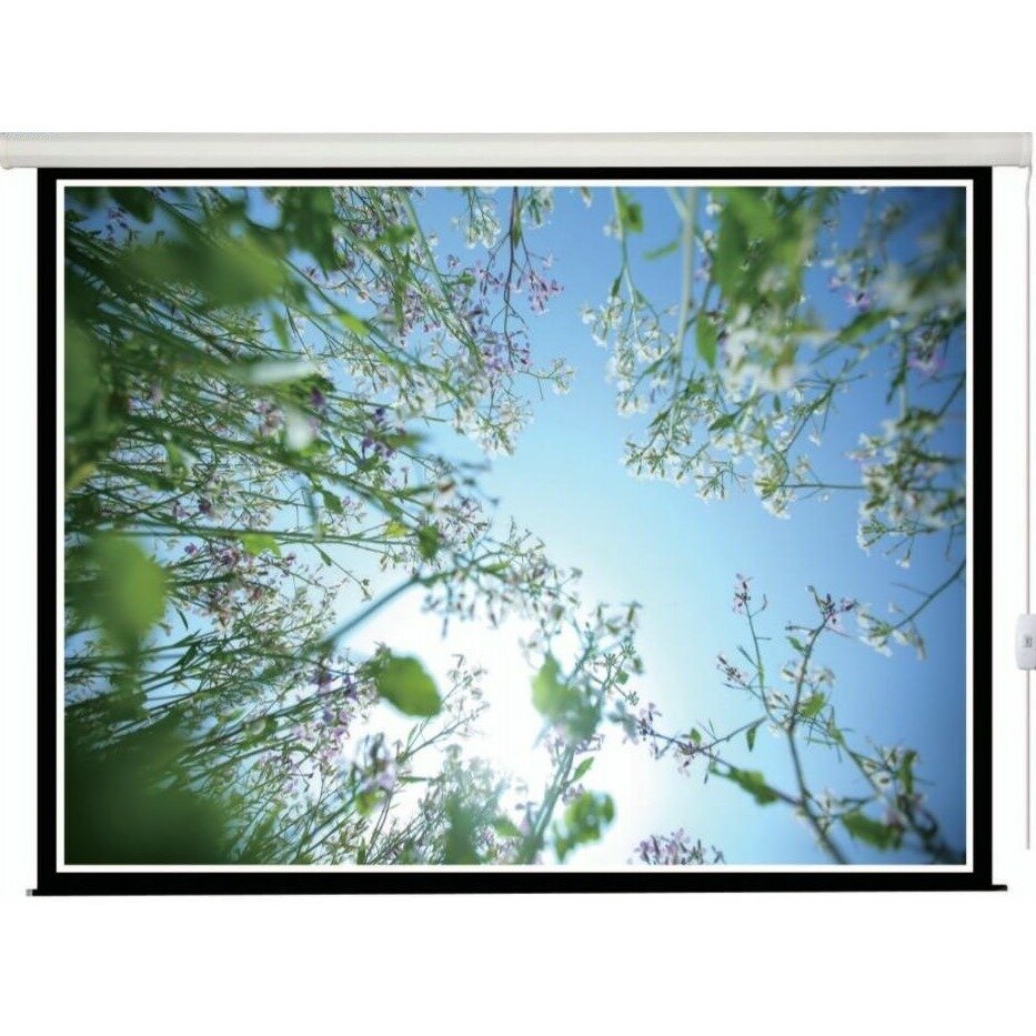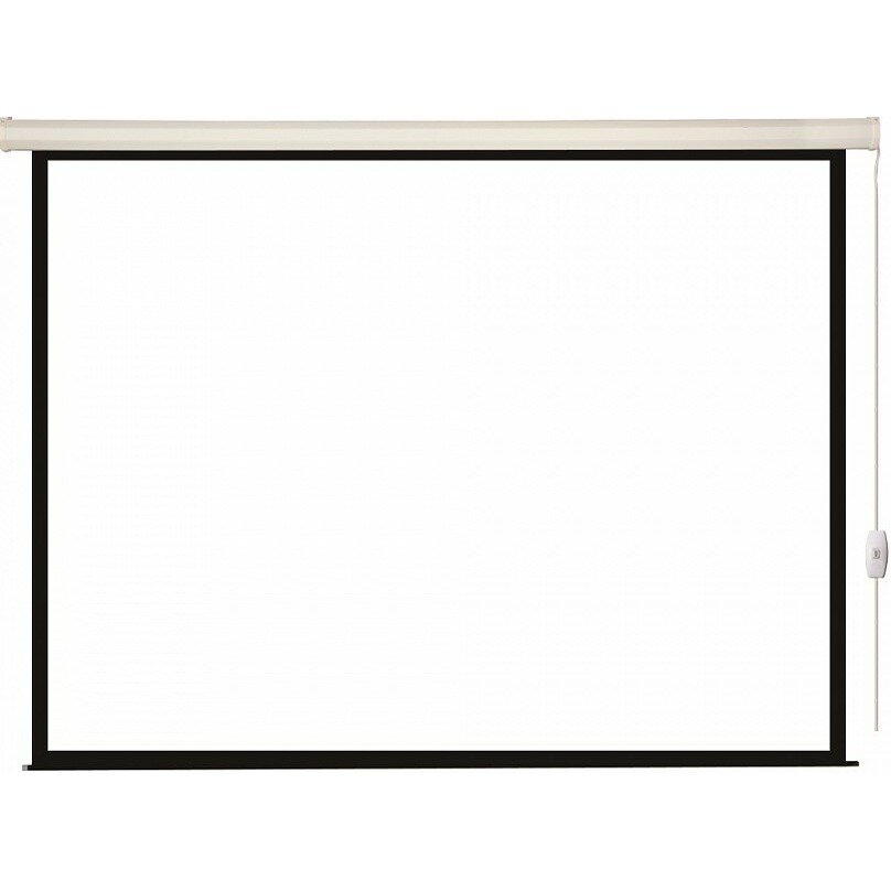 Благодаря электроприводу, разворачивание и сворачивание экрана осуществляется одним нажатием кнопки на пульте управления. Это не только удобно, но и значительно продлевает срок службы полотна, так как исключает механические повреждения при ручном использовании. Универсальное крепление позволяет установить экран как на стене, так и на потолке, что делает его подходящим для различных помещений.