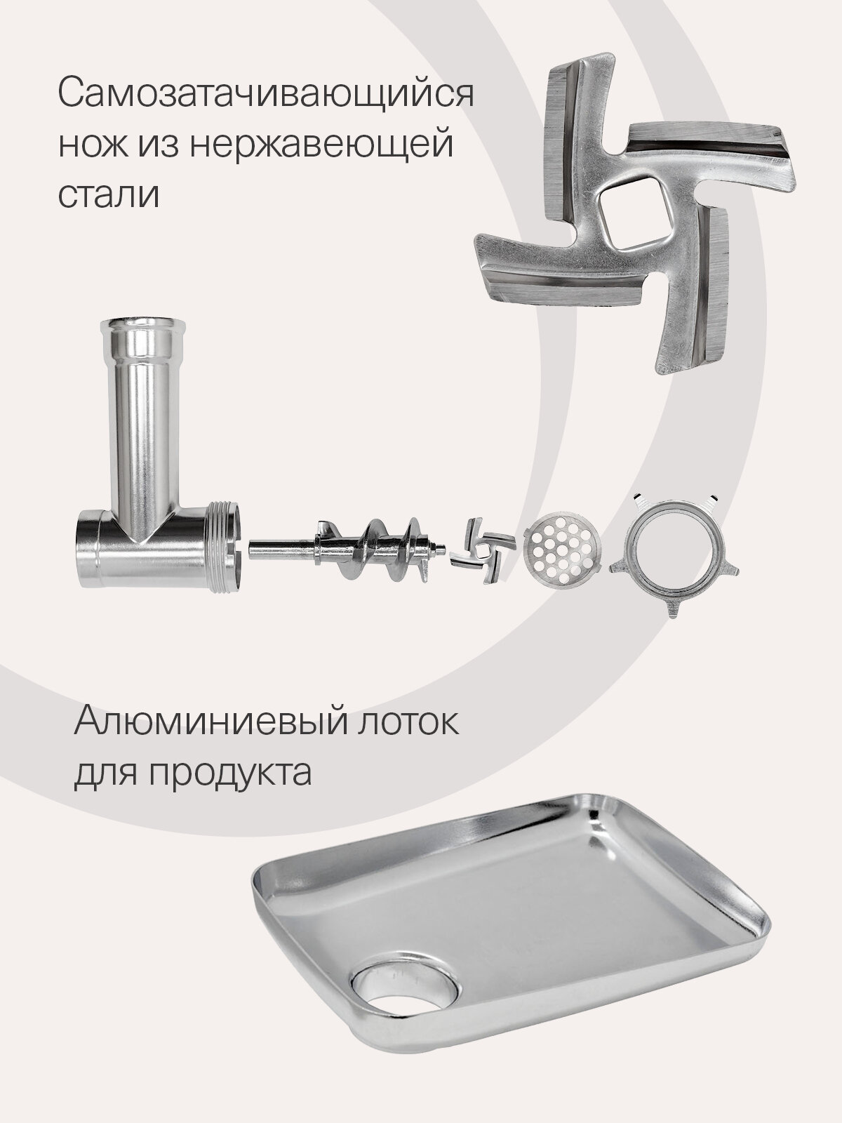 Прочный корпус и надежный мотор гарантируют долгий срок службы, а стильный дизайн впишется в интерьер любой кухни. Простота в использовании и уходе делают эту мясорубку идеальным выбором для тех, кто ценит свое время и комфорт.
