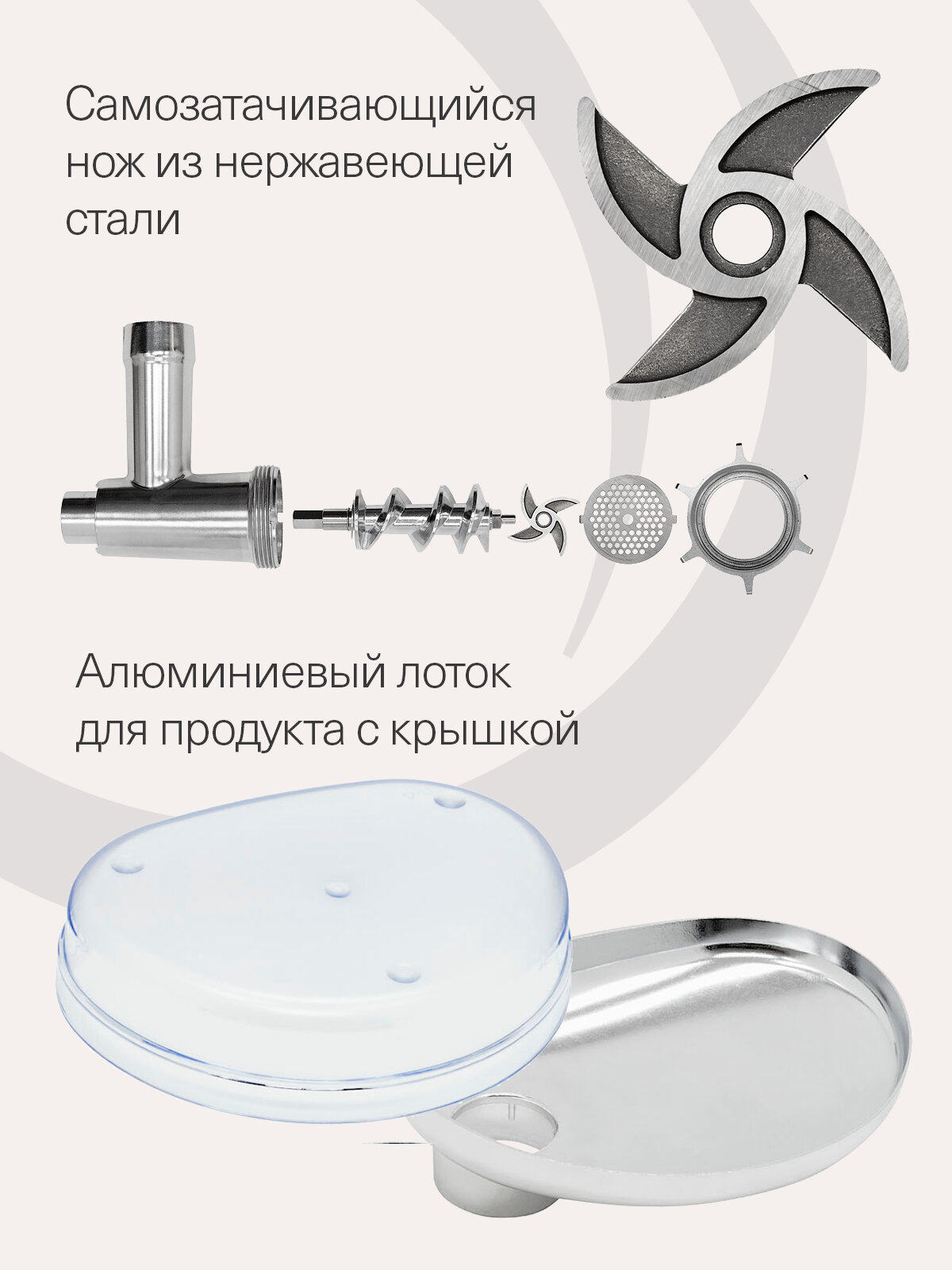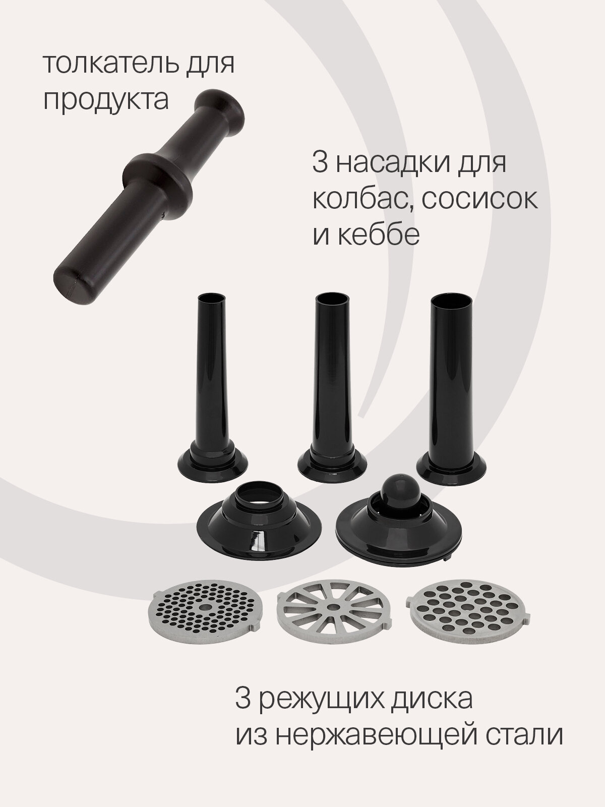 Благодаря мощному двигателю и прочной конструкции, мясорубка KRONA WOLF легко справится с любым видом мяса, а также с другими продуктами. В комплекте с мясорубкой идут различные насадки, расширяющие ее функциональность и позволяющие приготовить широкий спектр блюд – от домашнего фарша до колбас и кеббе.