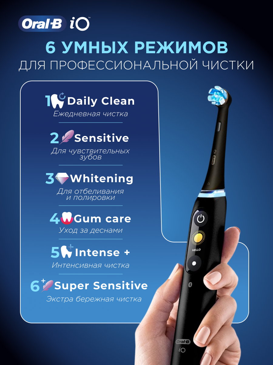 Oral-B iO Series 8N Black Onyx – это не просто зубная щетка, это персонализированный опыт чистки. Уникальная технология iO™ объединяет микровибрации щетинок и магнитный привод, создавая ощущение невероятной гладкости и чистоты после каждой процедуры. Датчики давления нового поколения защищают ваши десны от чрезмерного надавливания, а искусственный интеллект распознает ваш индивидуальный стиль чистки и помогает вам достичь максимального результата.