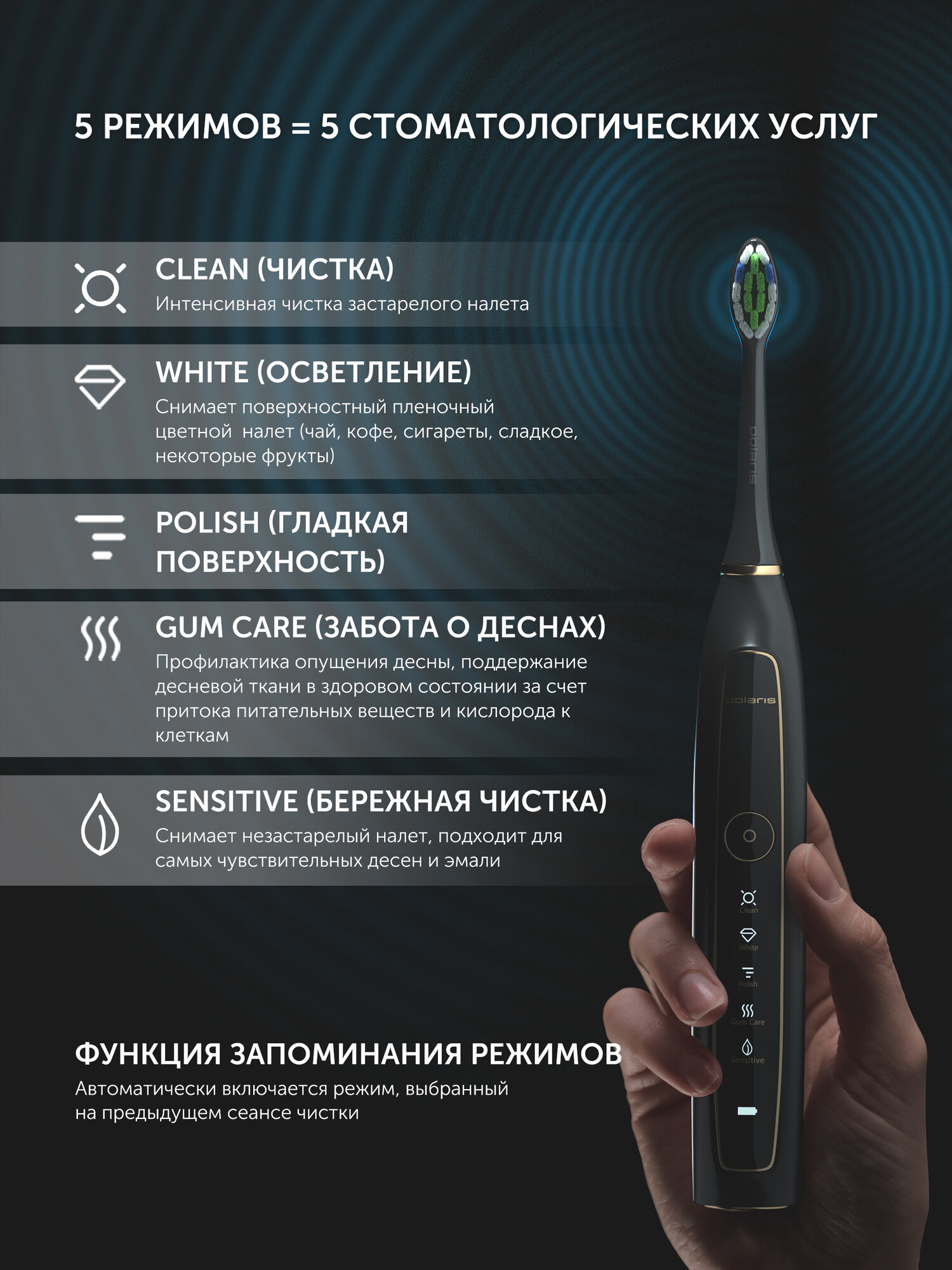 Ищете эффективный и бережный способ ухода за зубами, который превзойдет возможности обычной щетки? Электрическая зубная щетка Polaris PETB-0101 TC станет вашим надежным помощником в поддержании здоровья полости рта и ослепительной улыбки!