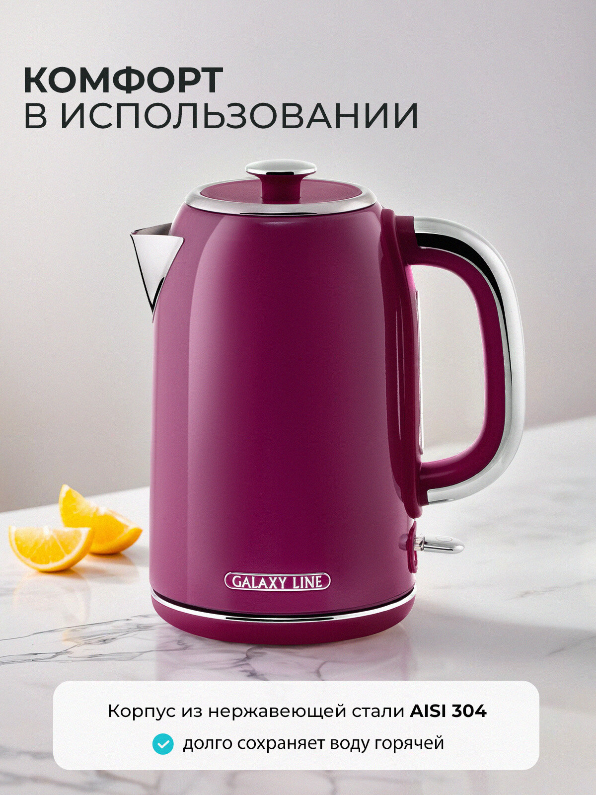 Электрический чайник Galaxy Line 0346: Малиновое очарование на вашей кухне
