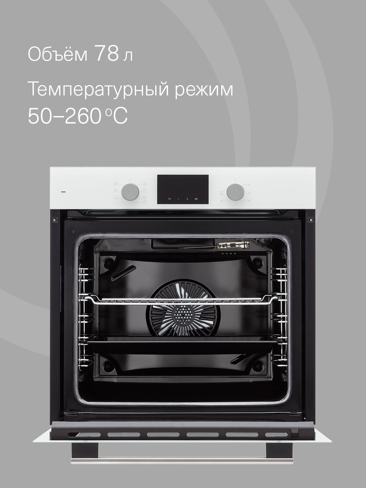 Внутреннее пространство духового шкафа достаточно вместительно, что позволяет готовить большие порции блюд для всей семьи или гостей. А благодаря качественным материалам и покрытию, уход за ним не составит труда.