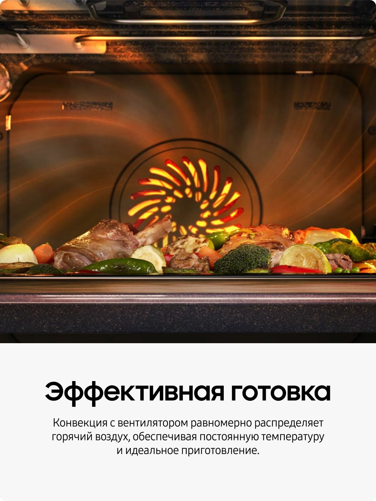 Вместительная камера духового шкафа позволяет готовить большие порции блюд для всей семьи или друзей. Благодаря функции конвекции, горячий воздух равномерно распределяется по всей камере, обеспечивая идеальное пропекание и золотистую корочку.