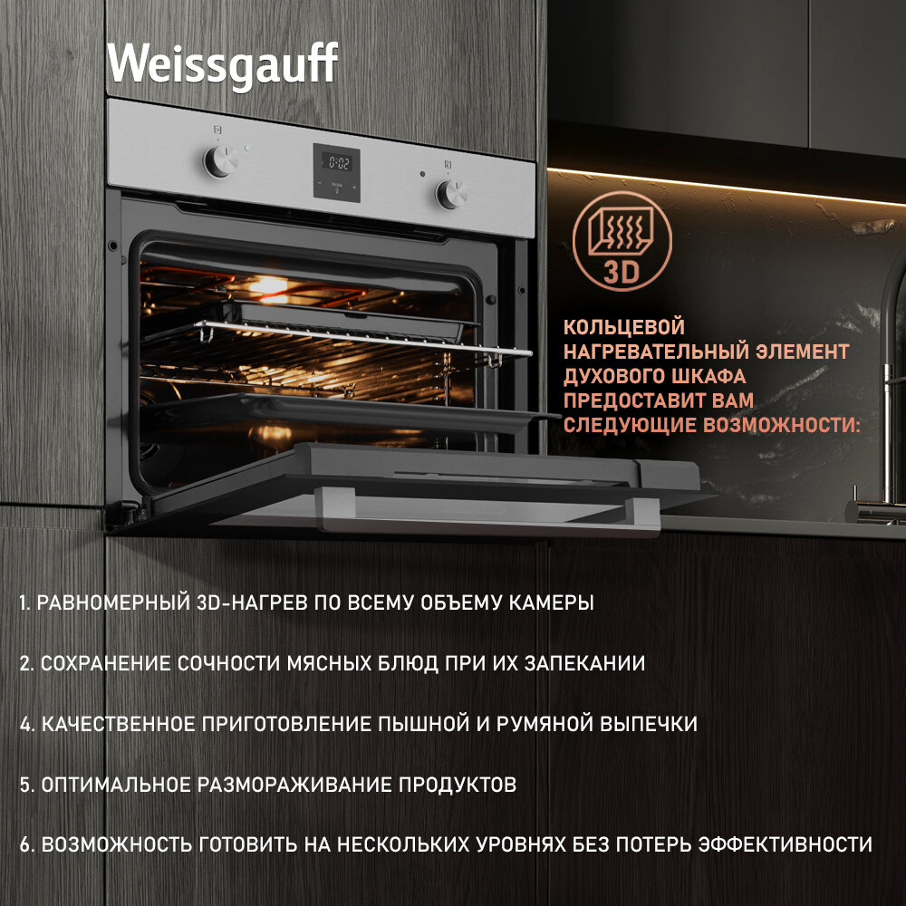 С духовым шкафом Weissgauff EO 459 PDX вы сможете наслаждаться вкусной и здоровой пищей, приготовленной с любовью. Почувствуйте себя настоящим шеф-поваром на своей кухне!