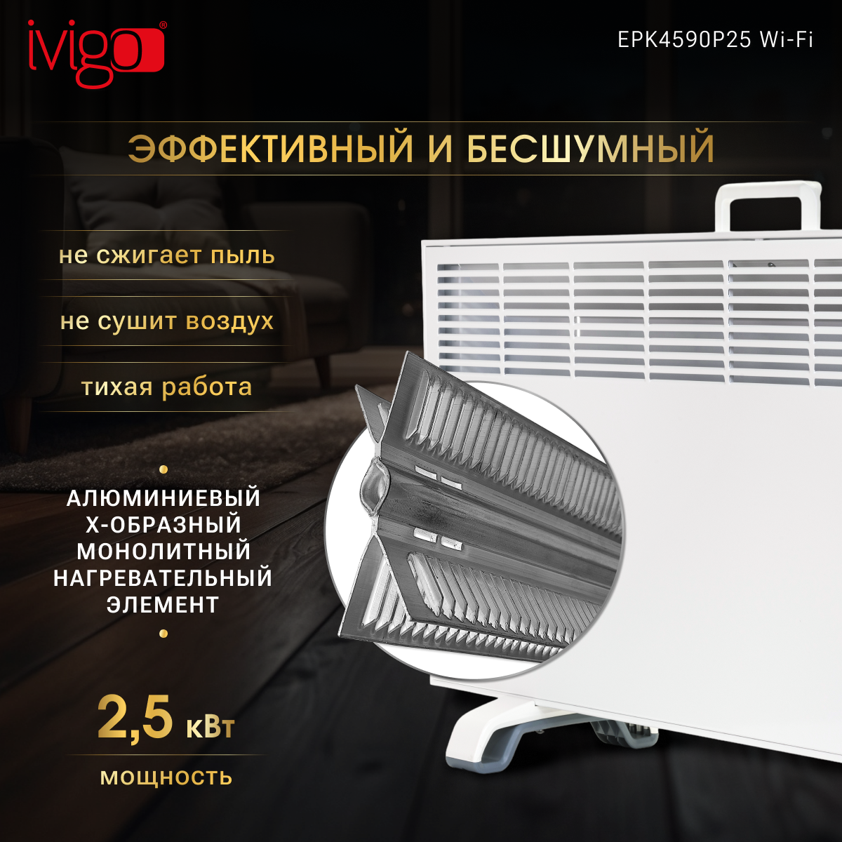 Ищете надежный и современный способ обогреть свой дом или офис? Электрический конвектор IVIGO EPK4590P25 с управлением по Wi-Fi – это идеальное решение для создания комфортной атмосферы в любом помещении. Забудьте о холодных вечерах и почувствуйте тепло, которое вы можете контролировать из любой точки мира.