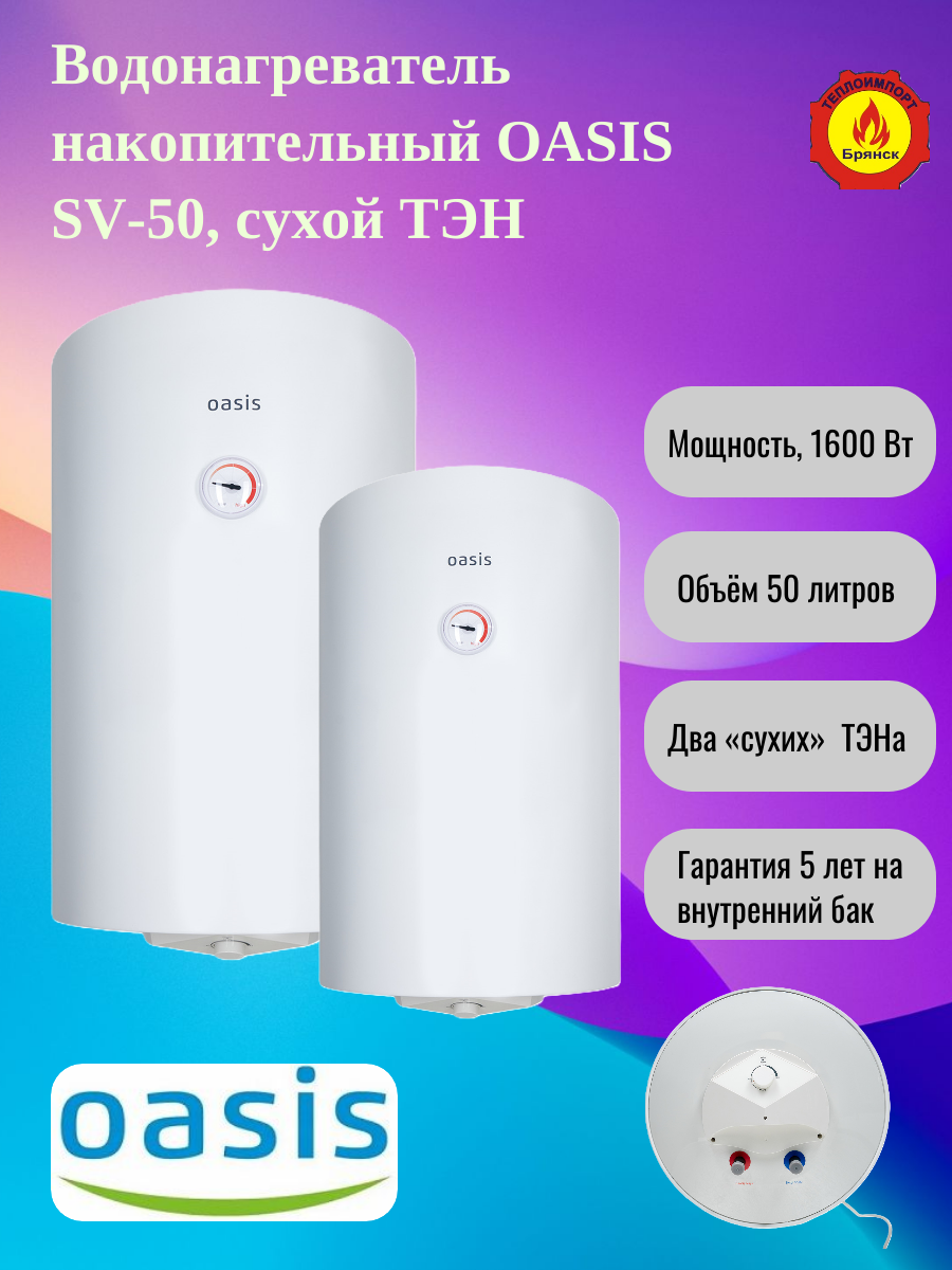 Выбирая Oasis SV-50, вы выбираете комфорт, надежность и экономию. Забудьте о проблемах с горячей водой и наслаждайтесь каждым днем с комфортом!