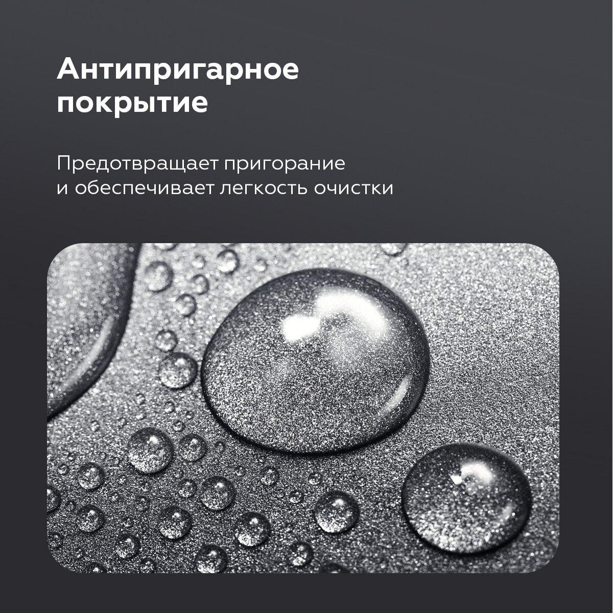 Готовьте с комфортом и легкостью! Специальное антипригарное покрытие предотвращает прилипание продуктов и облегчает очистку гриля после использования. Больше не нужно тратить много времени на уборку – просто протрите поверхность влажной тканью.