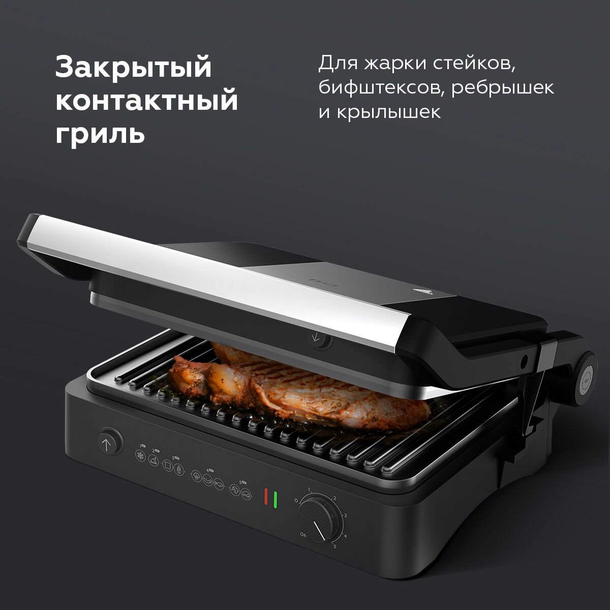 Забудьте о сложностях с уличным грилем и неудобствах приготовления на сковороде. Электрогриль BQ GR3001 обеспечивает равномерный нагрев и оптимальную температуру для идеальной прожарки мяса, рыбы, овощей и многого другого. Благодаря продуманной конструкции, он позволяет готовить как открытым способом, так и в закрытом состоянии, что значительно расширяет ваши кулинарные возможности.