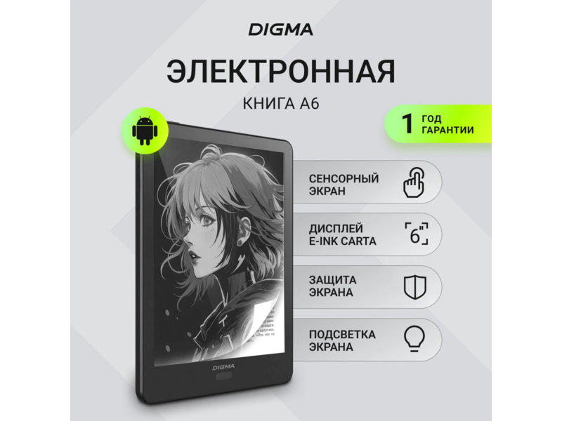 Электронная книга Digma A6 Plus – это идеальный выбор для тех, кто любит читать и ценит комфорт. Позвольте себе наслаждаться любимыми книгами в любое время и в любом месте с этой замечательной читалкой!