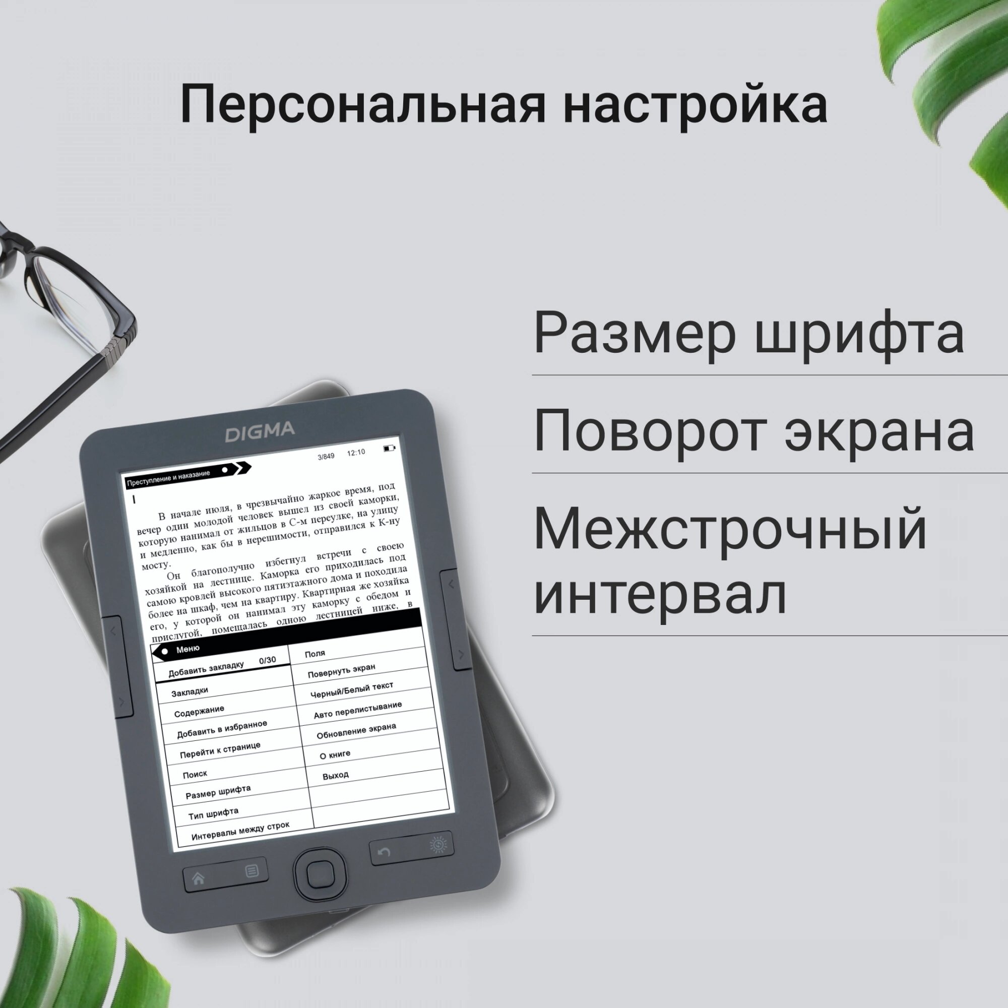 Ищете идеальную электронную книгу для комфортного чтения? Digma K1 634 - это ваш билет в мир литературы, где бы вы ни находились. Эта элегантная и легкая электронная книга станет незаменимым спутником в путешествиях, в дороге на работу или просто дома, на диване.