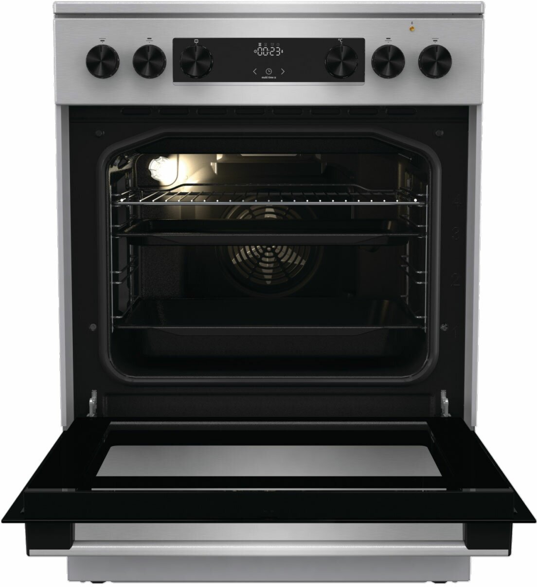 Духовой шкаф плиты Gorenje GECS6C70XC предлагает широкий выбор режимов нагрева, позволяя вам готовить разнообразные блюда – от запеканок и пирогов до мяса и птицы. Внутреннее покрытие духового шкафа легко очищается, что значительно упрощает уход за плитой.