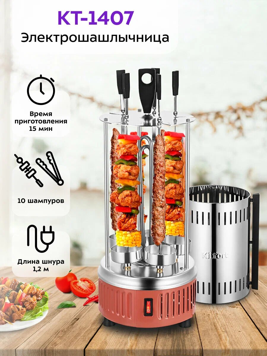 Мечтаете о сочном и ароматном шашлыке, приготовленном прямо у вас дома, независимо от погоды за окном? Электрошашлычница Kitfort KT-1407 станет вашим незаменимым помощником в создании кулинарных шедевров! Забудьте о долгих сборах на природу и утомительной разжигании углей – теперь шашлык доступен вам в любое время года.