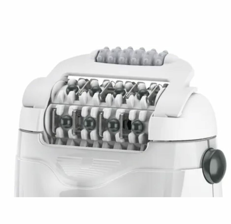 Удобная массажная система с шариками дополнительно стимулирует кожу, снижая чувствительность и делая процесс эпиляции более комфортным. Вы почувствуете приятное расслабление во время процедуры.