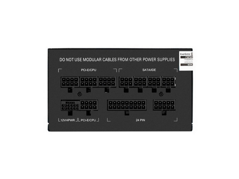 Exegate EX297235RUS оснащен всеми необходимыми разъемами для подключения современных видеокарт, материнских плат и накопителей. Полностью модульная конструкция кабелей обеспечивает удобство сборки и улучшает циркуляцию воздуха внутри корпуса, что способствует более эффективному охлаждению.