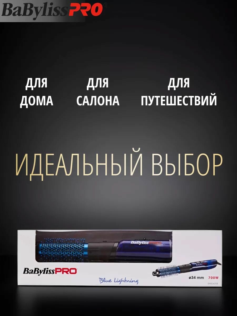 Этот фен-щетка станет вашим незаменимым помощником в создании неповторимого образа. Он идеально подходит для ежедневной укладки и особых случаев, позволяя вам всегда выглядеть на высоте. Почувствуйте уверенность в каждой пряди с BaByliss PRO Blue Lightning.