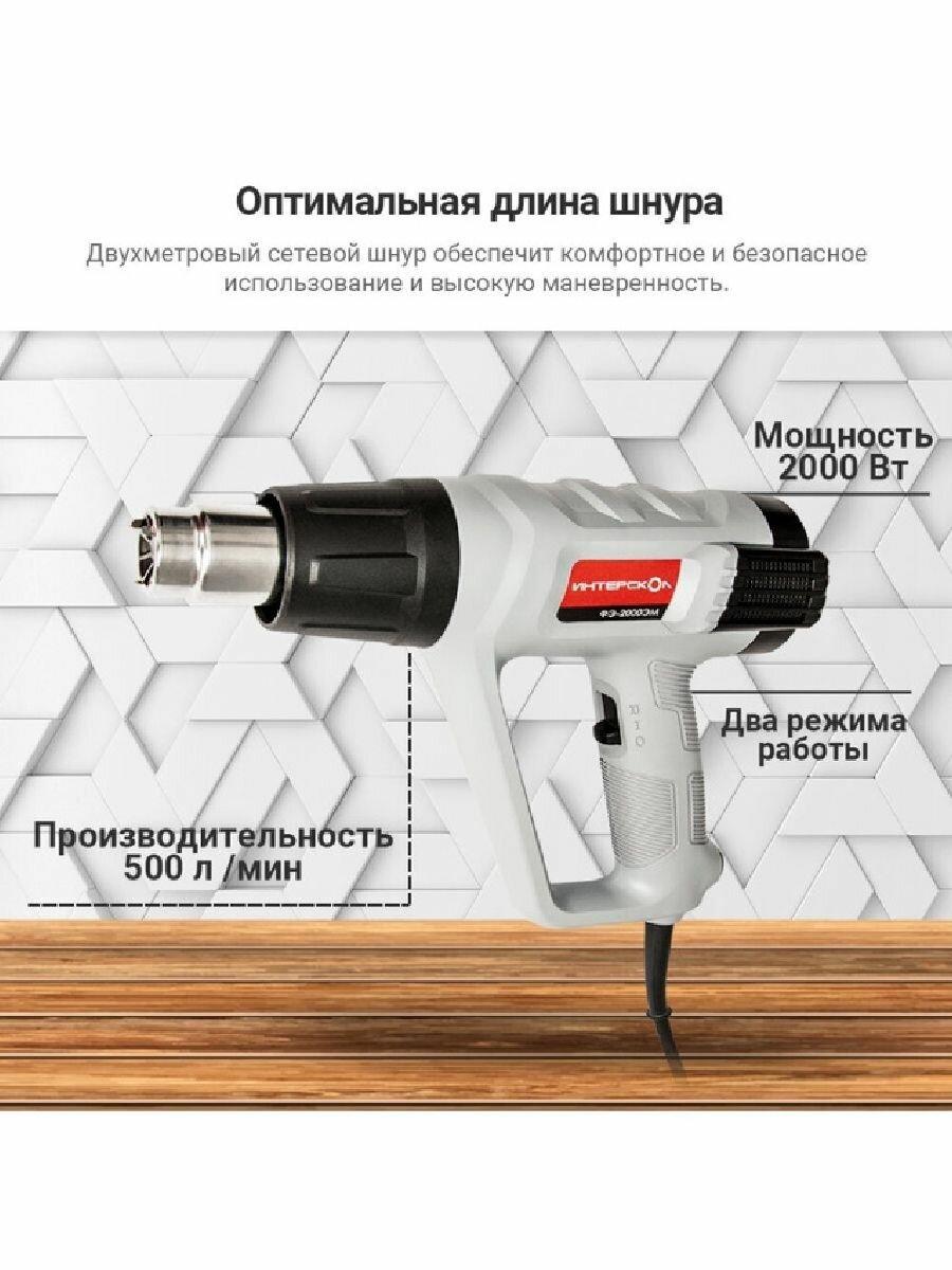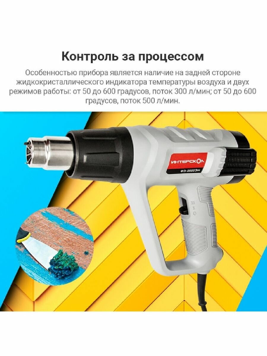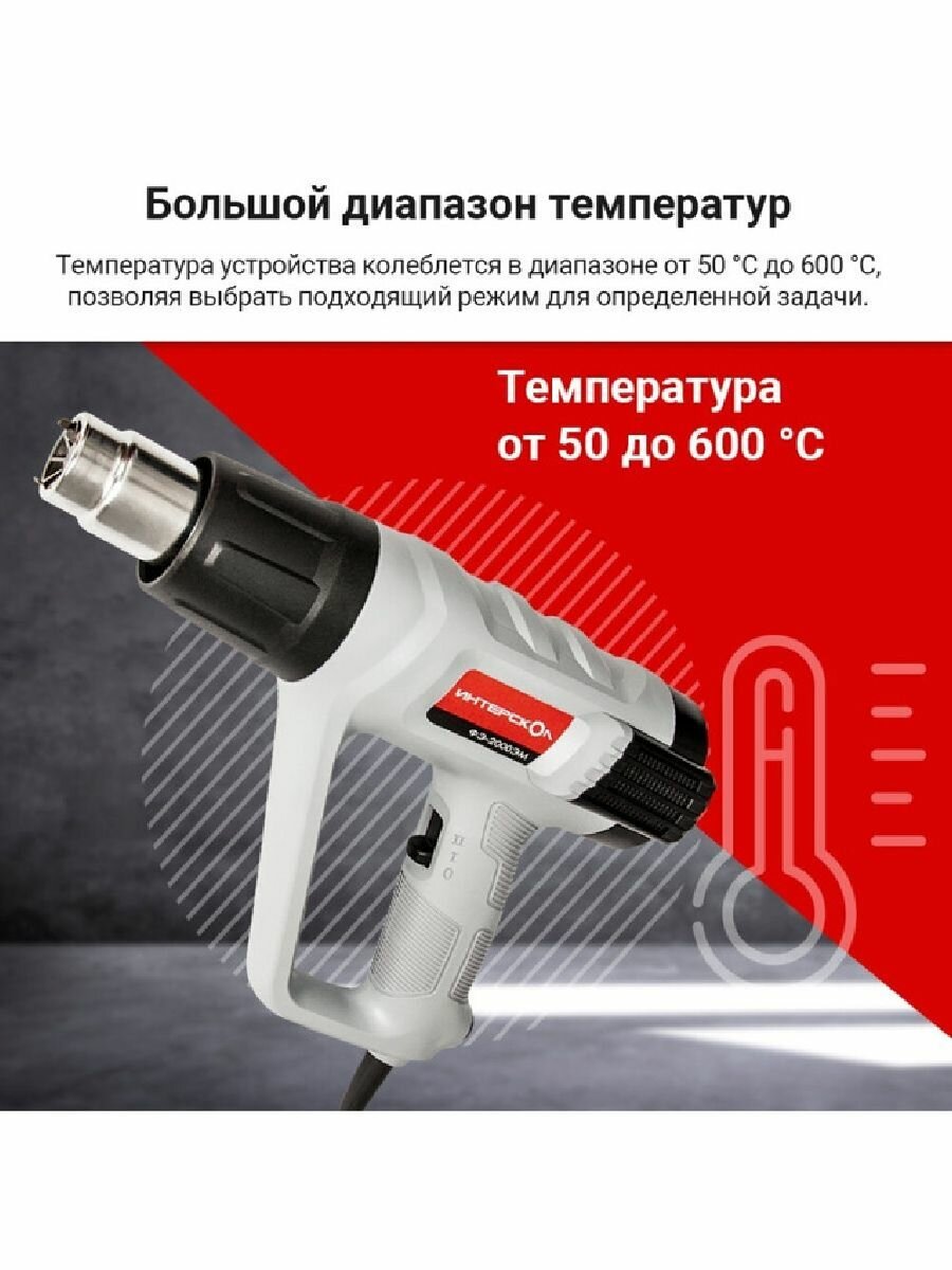 Ищете надежный и универсальный инструмент для широкого спектра строительных и ремонтных задач? Тогда обратите внимание на строительный фен ИНТЕРСКОЛ ФЭ-2000ЭМ! Этот профессиональный инструмент станет вашим незаменимым помощником как в быту, так и на строительной площадке.