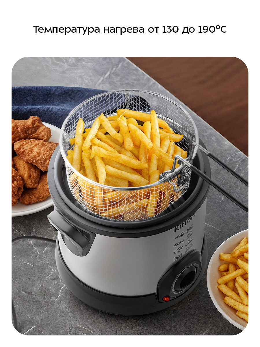 Компактный дизайн фритюрницы позволяет ей легко вписаться в любой интерьер кухни, не занимая много места. Легкость очистки и простота в уходе делают использование Kitfort KT-2011 еще более приятным и удобным.