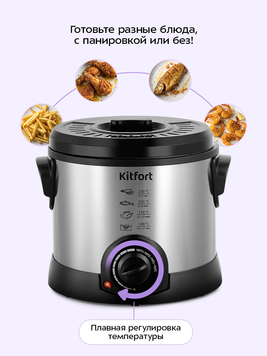 Фритюрница Kitfort KT-2011 – это ваш надежный помощник на кухне, который поможет вам легко и быстро приготовить любимые блюда, радуя себя и своих близких восхитительным вкусом и хрустящей корочкой.
