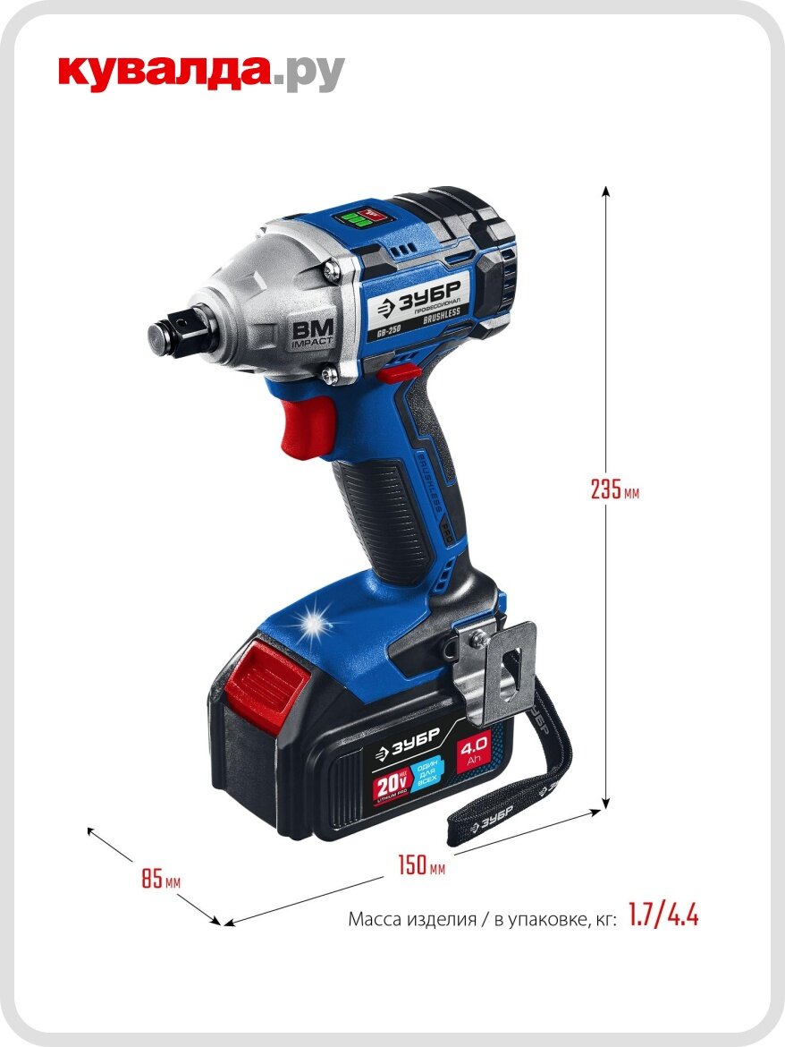 Приобретите аккумуляторный гайковерт ЗУБР ГБ-250-42 и убедитесь в его мощности и надежности! Работайте профессионально, работайте с ЗУБР!