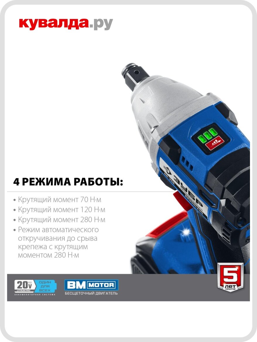 Аккумуляторный гайковерт ЗУБР ГБ-250-42 – это инвестиция в вашу продуктивность и комфорт. Он станет надежным помощником в любой работе, требующей закручивания или откручивания крепежа. Забудьте о ручных ключах и утомительной работе – с этим гайковертом вы будете выполнять задачи быстро, легко и эффективно.