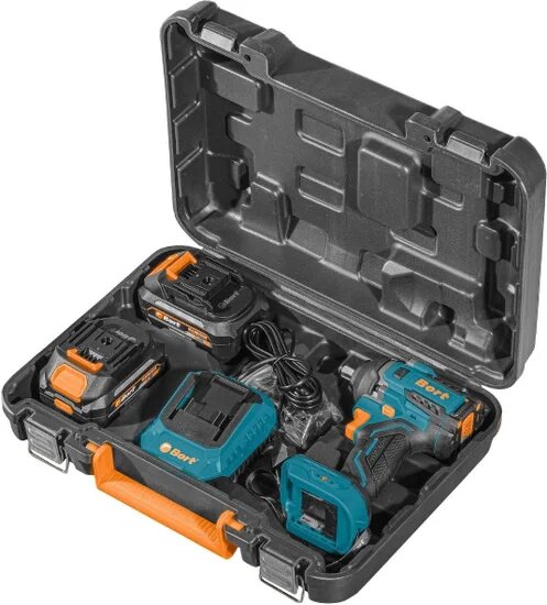 В комплекте с гайковертом идут два аккумулятора, что позволяет работать непрерывно в течение длительного времени, не беспокоясь о необходимости зарядки. Кейс для хранения и транспортировки обеспечивает удобство и защиту инструмента, а также аккумуляторов и зарядного устройства.