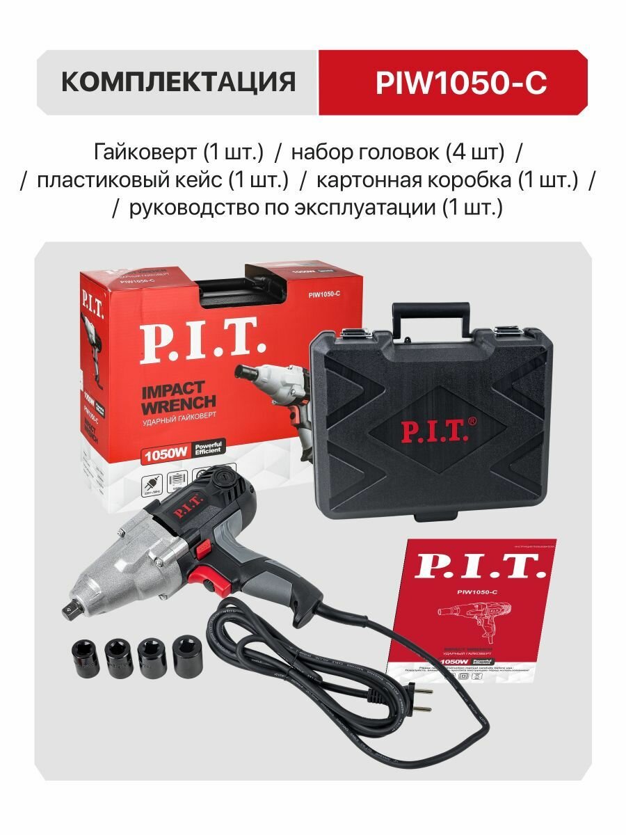 PIT PIW1050-C – это сочетание высокой производительности и простоты использования. Благодаря своей конструкции, он обеспечивает превосходный крутящий момент, позволяя легко и быстро справляться даже с самыми тугими гайками и болтами. Забудьте о ручном труде – с этим гайковертом работа станет значительно быстрее и эффективнее.