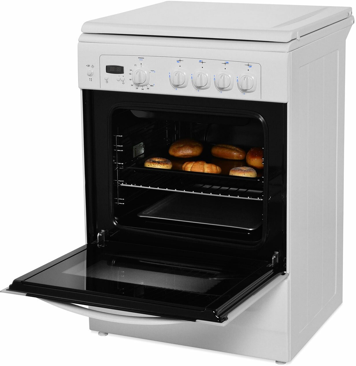 Готовьте с удовольствием благодаря удобным регулировкам и интуитивно понятным элементам управления. Плита оснащена всем необходимым для комфортного приготовления: от варочной поверхности с оптимальным количеством конфорок до вместительной духовки, позволяющей запекать большие порции блюд.