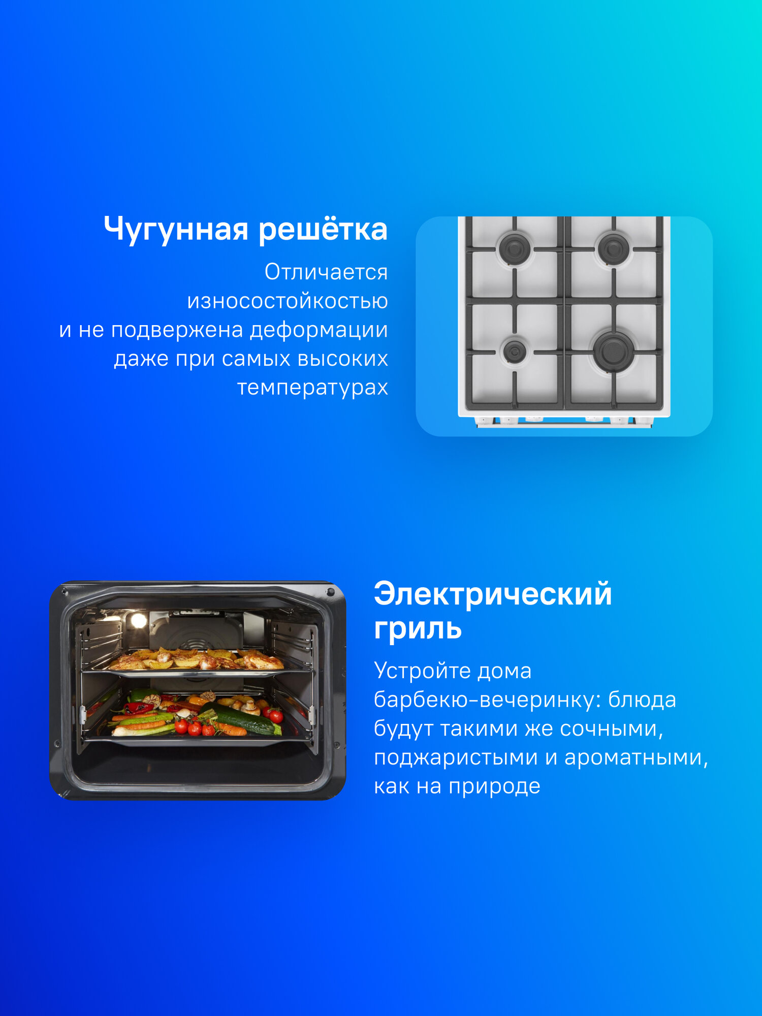 Электрическая духовка, которой оснащена эта модель, предлагает широкий выбор режимов нагрева, позволяя вам готовить самые разнообразные блюда – от сочного мяса до нежной выпечки. Равномерное распределение тепла в духовке обеспечит идеальный результат каждый раз.
