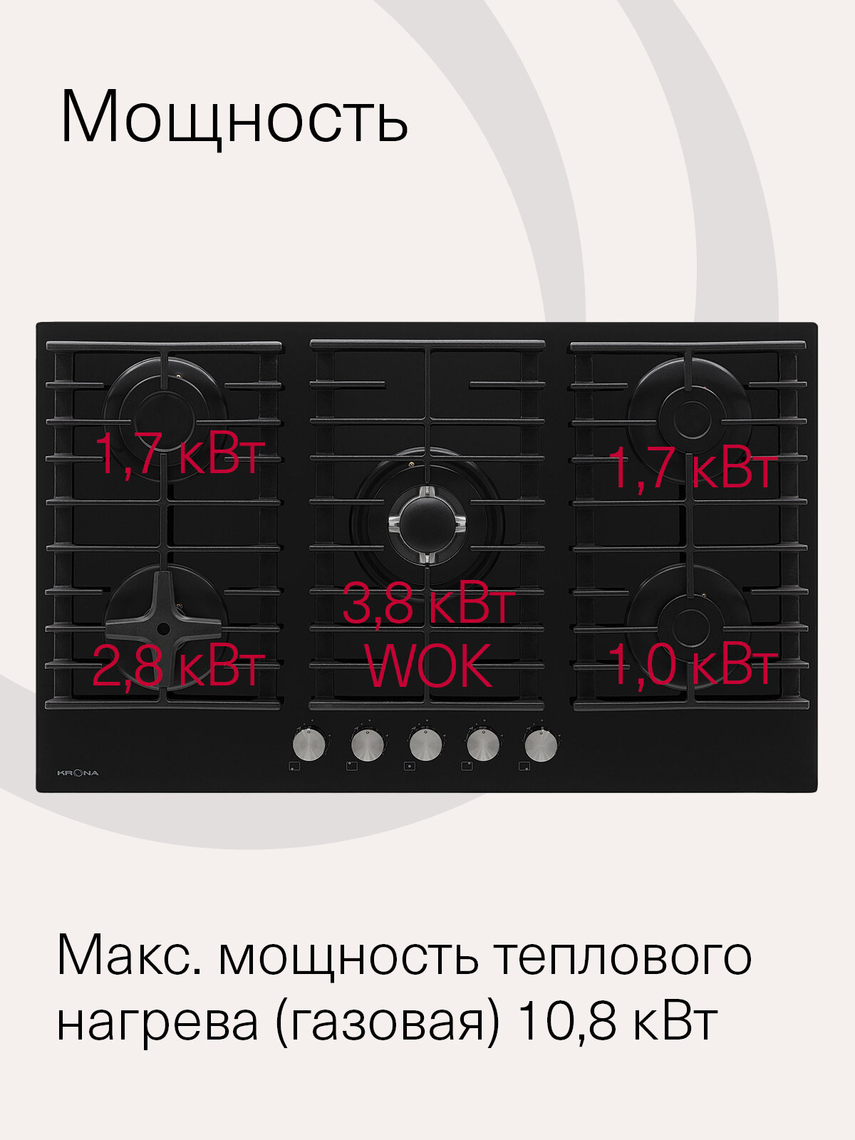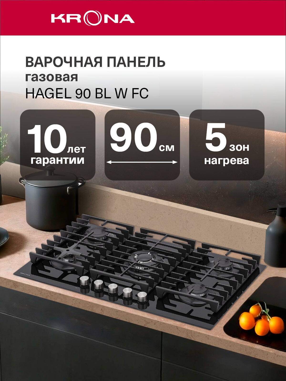 Не упустите возможность обновить свою кухню с помощью этой стильной и функциональной варочной панели. Закажите KRONA HAGEL 90 BL W FC_9 прямо сейчас и наслаждайтесь комфортным и безопасным приготовлением пищи!