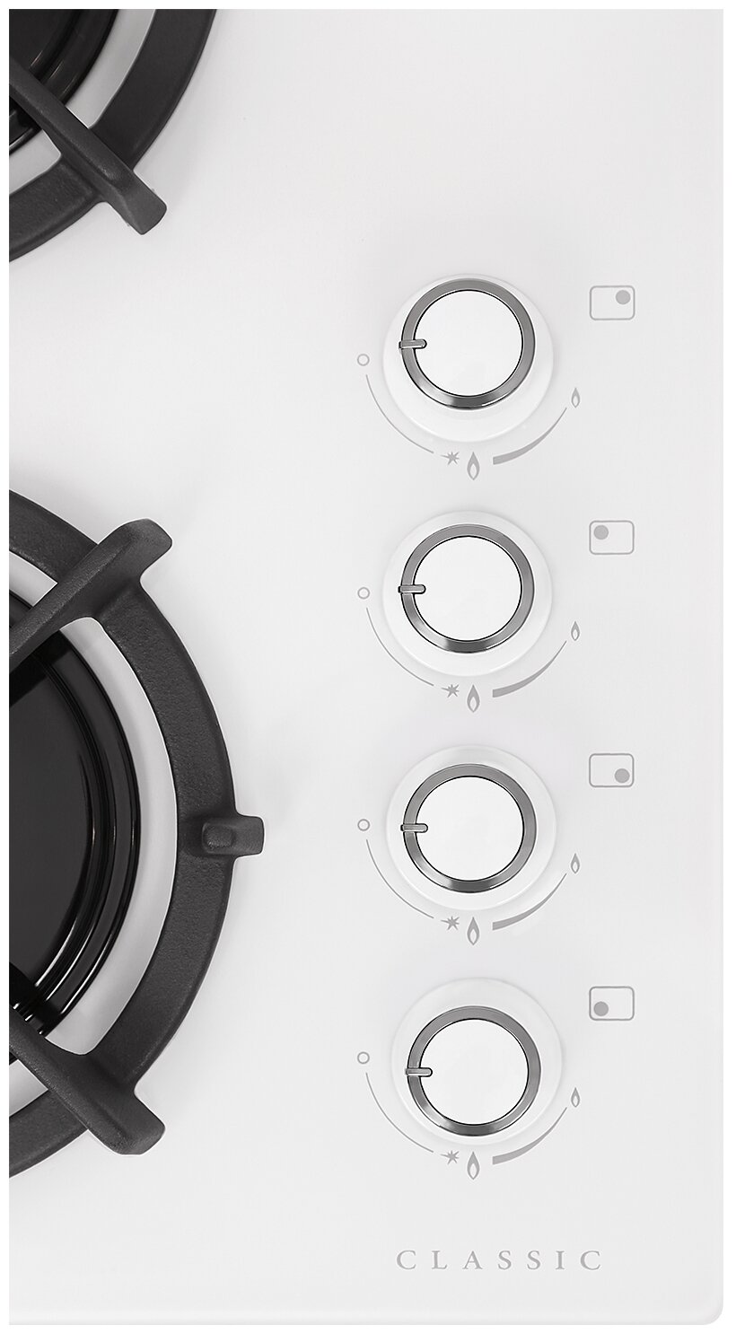Эта модель имеет классический белый цвет, который гармонично впишется в любой интерьер кухни. Удобное расположение конфорок позволяет одновременно готовить несколько блюд, экономя ваше время и силы. Система электроподжига обеспечивает быстрое и безопасное включение конфорок, а функция газ-контроль гарантирует вашу безопасность, автоматически прекращая подачу газа в случае затухания пламени.