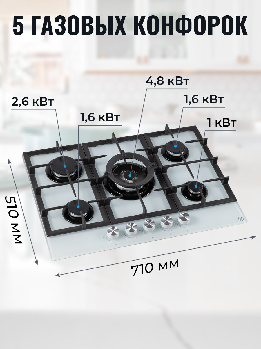 Эта газовая варочная панель отличается продуманной конструкцией и использованием качественных материалов, что обеспечивает ее долговечность и безопасность в эксплуатации. Ее эргономичные элементы управления позволяют точно регулировать интенсивность пламени, обеспечивая оптимальный нагрев для различных блюд.