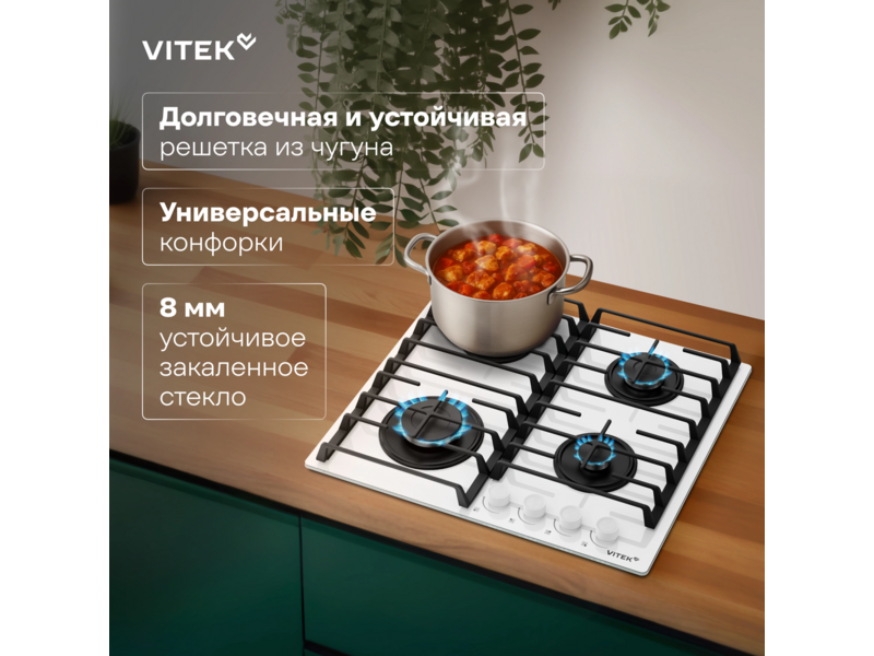 Выбирая газовую варочную поверхность Vitek VGH-6420 WG, вы выбираете надежность, стиль и безопасность. Эта панель станет незаменимым помощником на вашей кухне и позволит вам наслаждаться процессом приготовления пищи, создавая кулинарные шедевры для себя и своих близких.