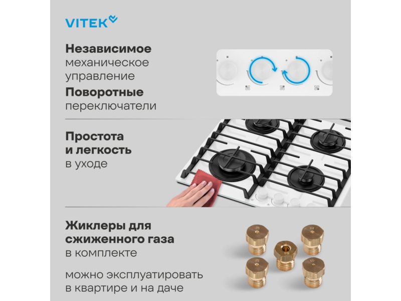 Приобретите газовую варочную поверхность Vitek VGH-6420 WG прямо сейчас и ощутите все преимущества современного дизайна и передовых технологий!