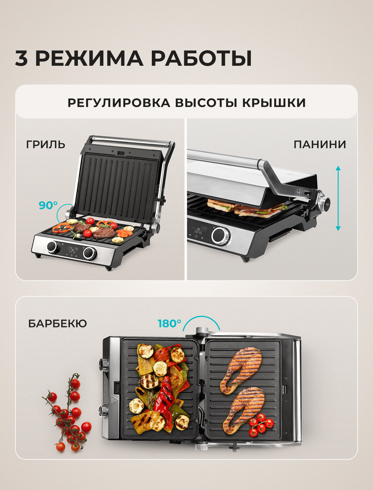 С этим электрогрилем вы сможете наслаждаться блюдами, приготовленными на гриле, в любое время года. Он идеально подходит для приготовления мяса, рыбы, птицы, овощей и даже сэндвичей. Легко моющиеся пластины обеспечат простоту в уходе и сэкономят ваше время.