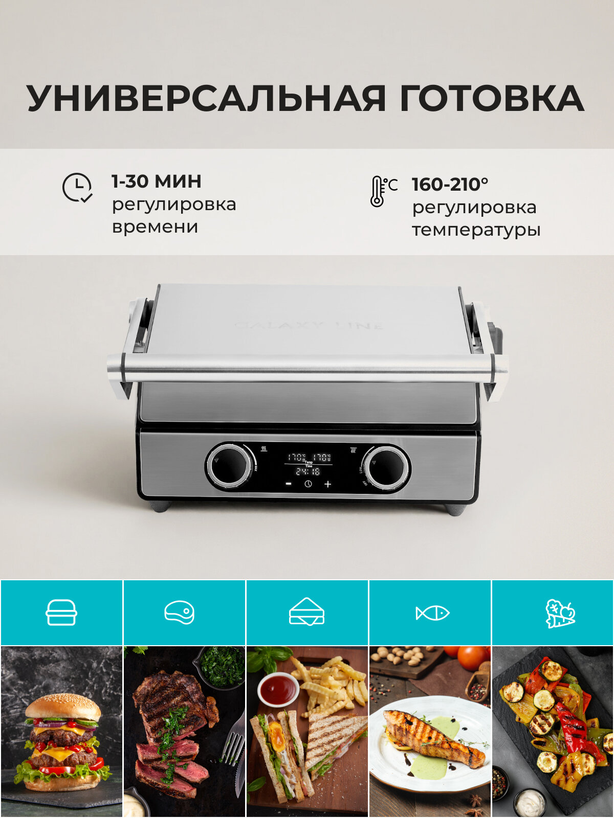 Ищете идеальный способ приготовления сочных стейков, ароматных овощей-гриль или хрустящих панини прямо у себя дома? Электрический гриль Galaxy Line GL2988 - это ваш ключ к вкусным и разнообразным блюдам, которые порадуют всю семью!