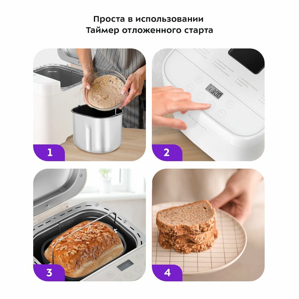 Благодаря интуитивно понятному управлению и множеству автоматических программ, даже начинающий кулинар сможет без труда освоить все возможности этого устройства. Просто выберите нужную программу, добавьте ингредиенты, и хлебопечь сделает все остальное за вас. Она сама замесит тесто, даст ему подняться и испечет идеальный хлеб с хрустящей корочкой.
