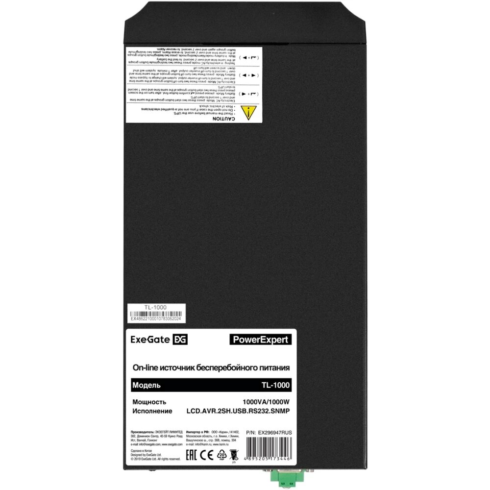 Забудьте о проблемах, связанных с перебоями в электросети. Закажите ИБП ExeGate PowerExpert TL 1000 LCD AVR2SH USB RS232 SNMP сегодня и обеспечьте надежную защиту своего оборудования!