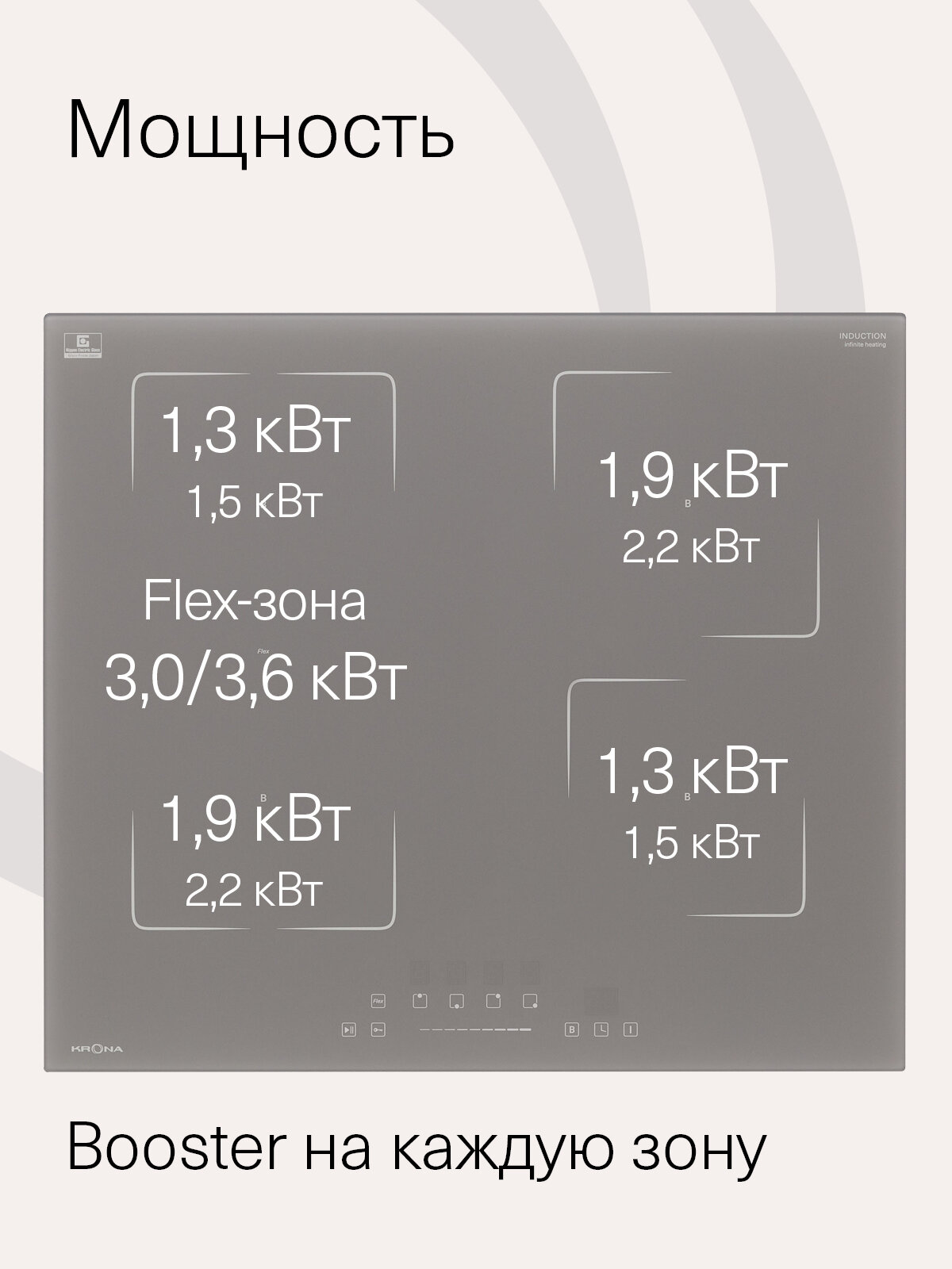 Ищете современную и эффективную варочную панель для вашей кухни? Индукционная варочная поверхность KRONA Mysterium Max IH 60 GR – это отличный выбор для тех, кто ценит скорость, безопасность и стиль.