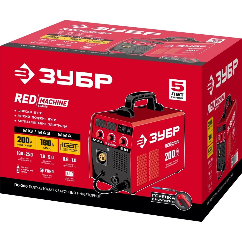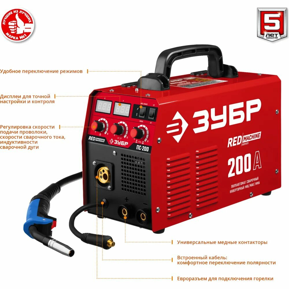 Ищете универсальное и эффективное решение для сварочных работ? Инверторный сварочный полуавтомат ЗУБР 200 А (ПС-200) – это отличный выбор как для профессионалов, так и для начинающих сварщиков, желающих получить качественный и надежный инструмент. Он предназначен для сварки в среде защитных газов, обеспечивая прочные и аккуратные швы.