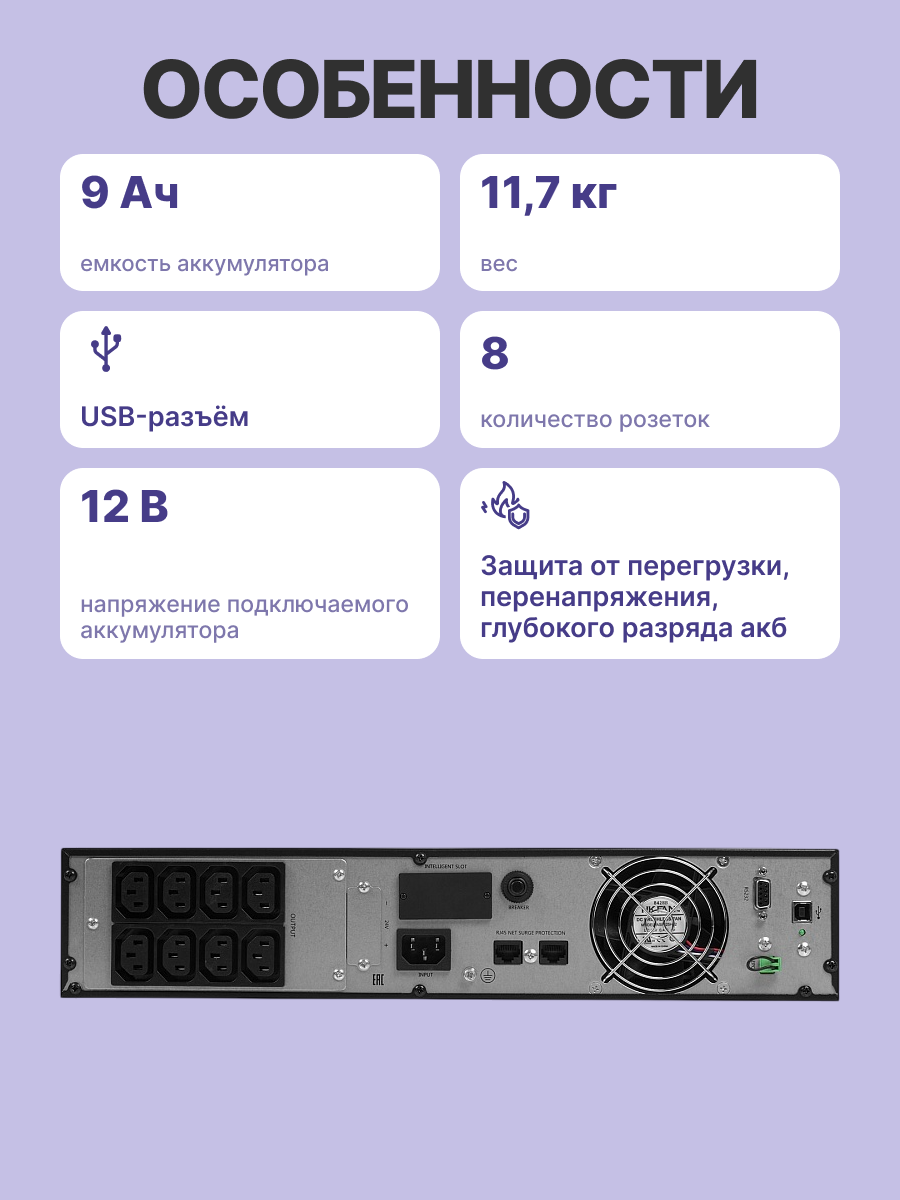 Этот ИБП предназначен для обеспечения стабильного и чистого электропитания, он гарантирует, что ваше оборудование будет работать даже при самых неблагоприятных условиях в электросети. Он эффективно сглаживает перепады напряжения, фильтрует помехи и обеспечивает мгновенное переключение на батарейное питание при пропадании электроэнергии.