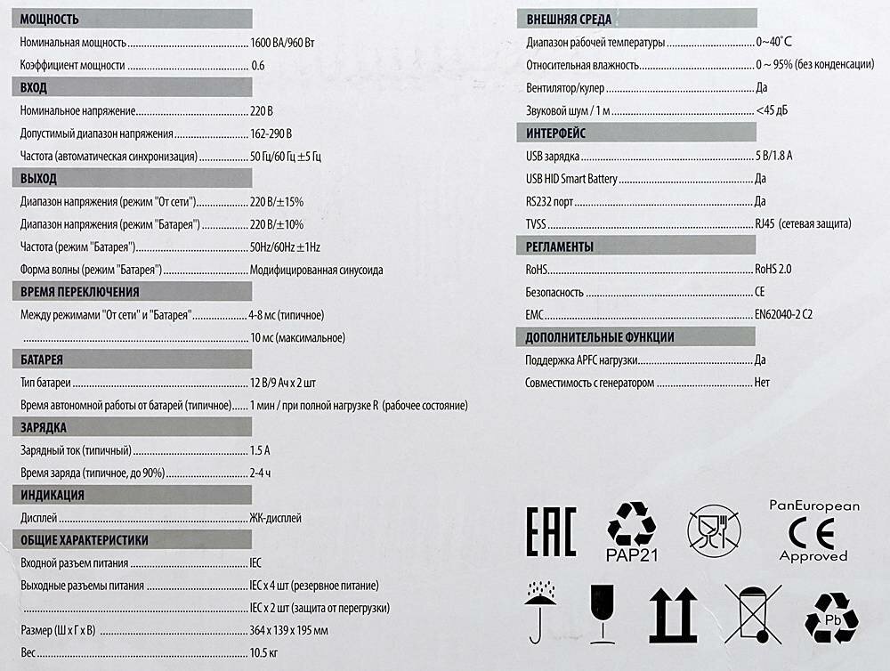 IPPON Smart Power Pro II 1600 отличается высокой надежностью и долговечностью. Он оснащен современной системой защиты от перегрузок, коротких замыканий и скачков напряжения, что гарантирует безопасность подключенного оборудования.