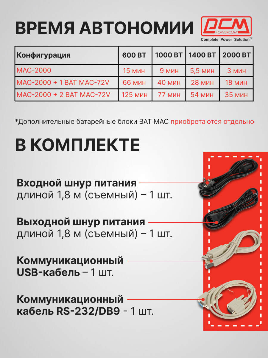 Приобретайте Powercom Macan MAC-2000 сегодня и обеспечьте надежную защиту вашим устройствам от неприятных сюрпризов с электропитанием! Это инвестиция в спокойствие и сохранность ваших ценных данных и оборудования.