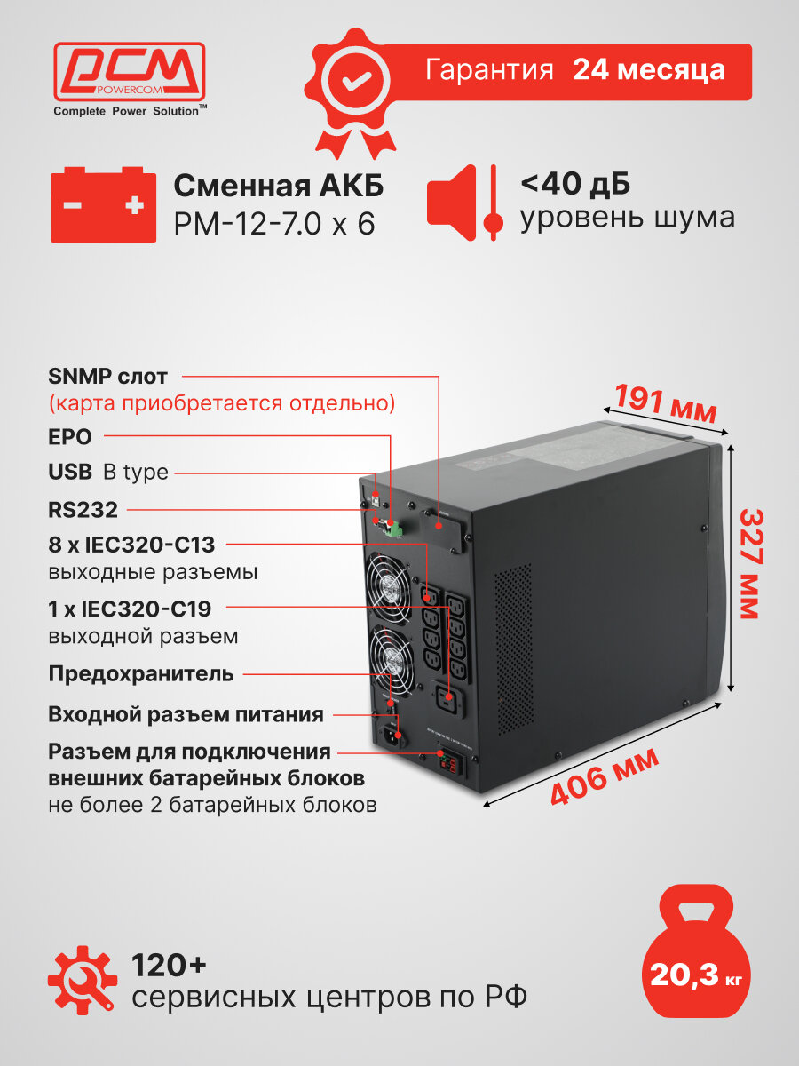 Powercom Macan MAC-2000 - это не только надежная защита, но и современный дизайн, который гармонично впишется в любой интерьер. Простота в установке и эксплуатации делает его идеальным выбором как для дома, так и для офиса.